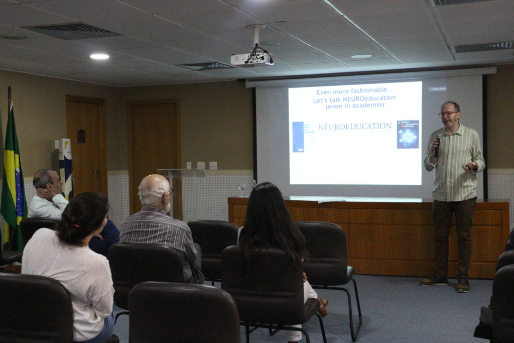 Dr. Sidarta abriu o encontro com uma apresentação sobre a importância do sono para a cognição, incluindo a memória. O pesquisador apresentou dados de seus estudos com crianças e adolescentes que revelam que quando a criança descansa após o aprendizado, a fixação do que aprendeu é maior.