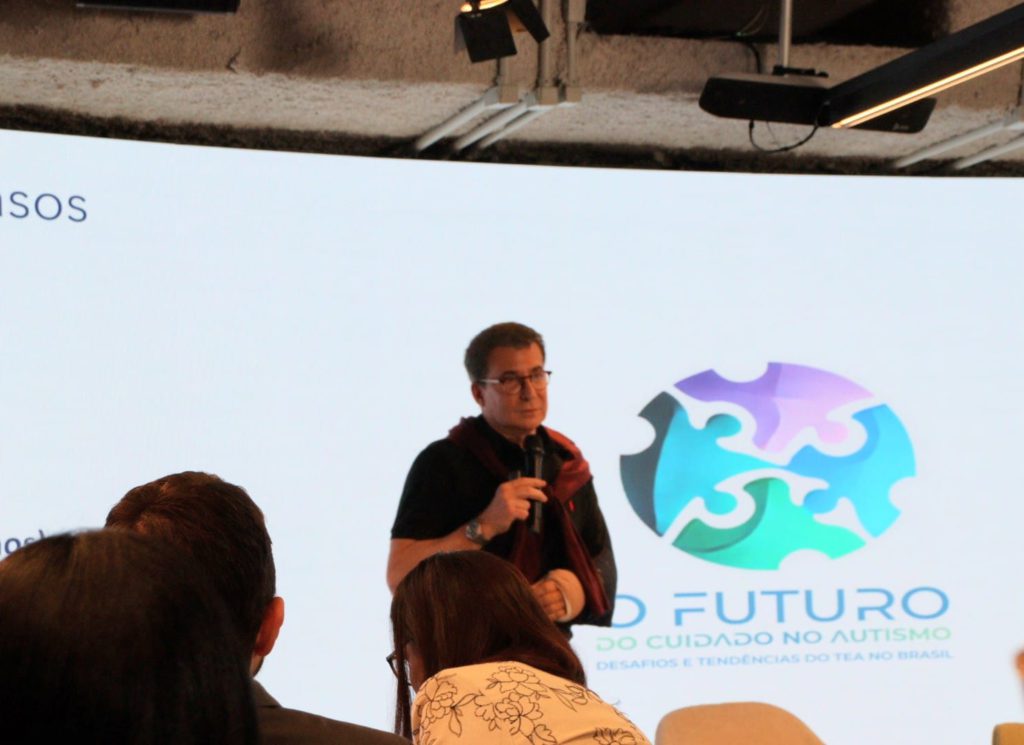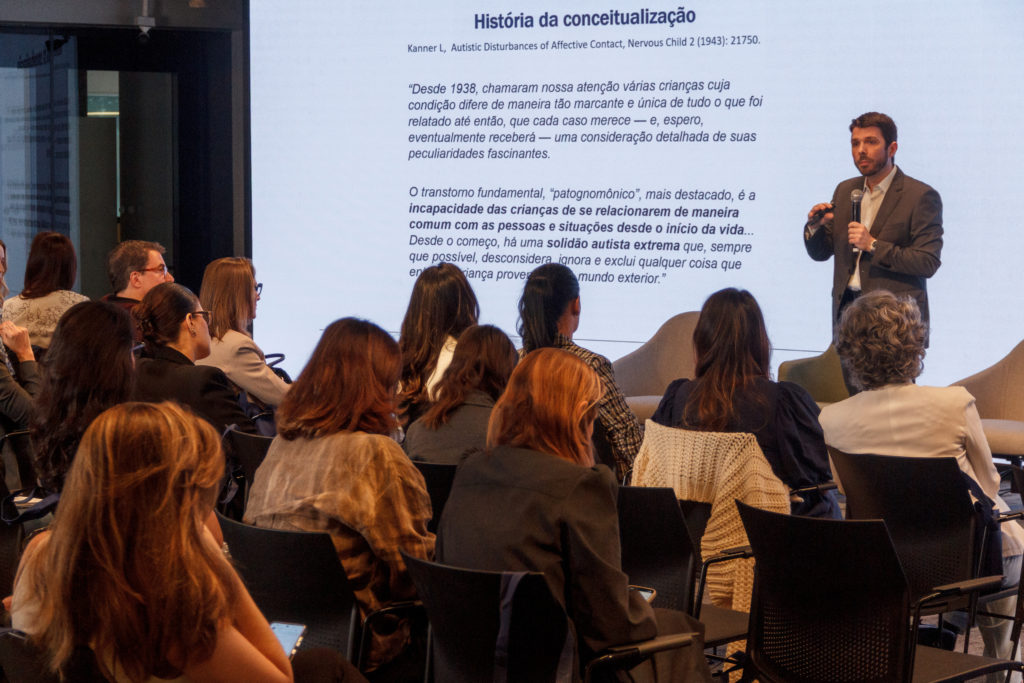 Na sequência, o Dr. Guilherme Polanczyk, professor associado de psiquiatria da infância e adolescência da USP, apresentou as origens do diagnóstico de autismo, popularização do tema e falou sobre as características do TEA.