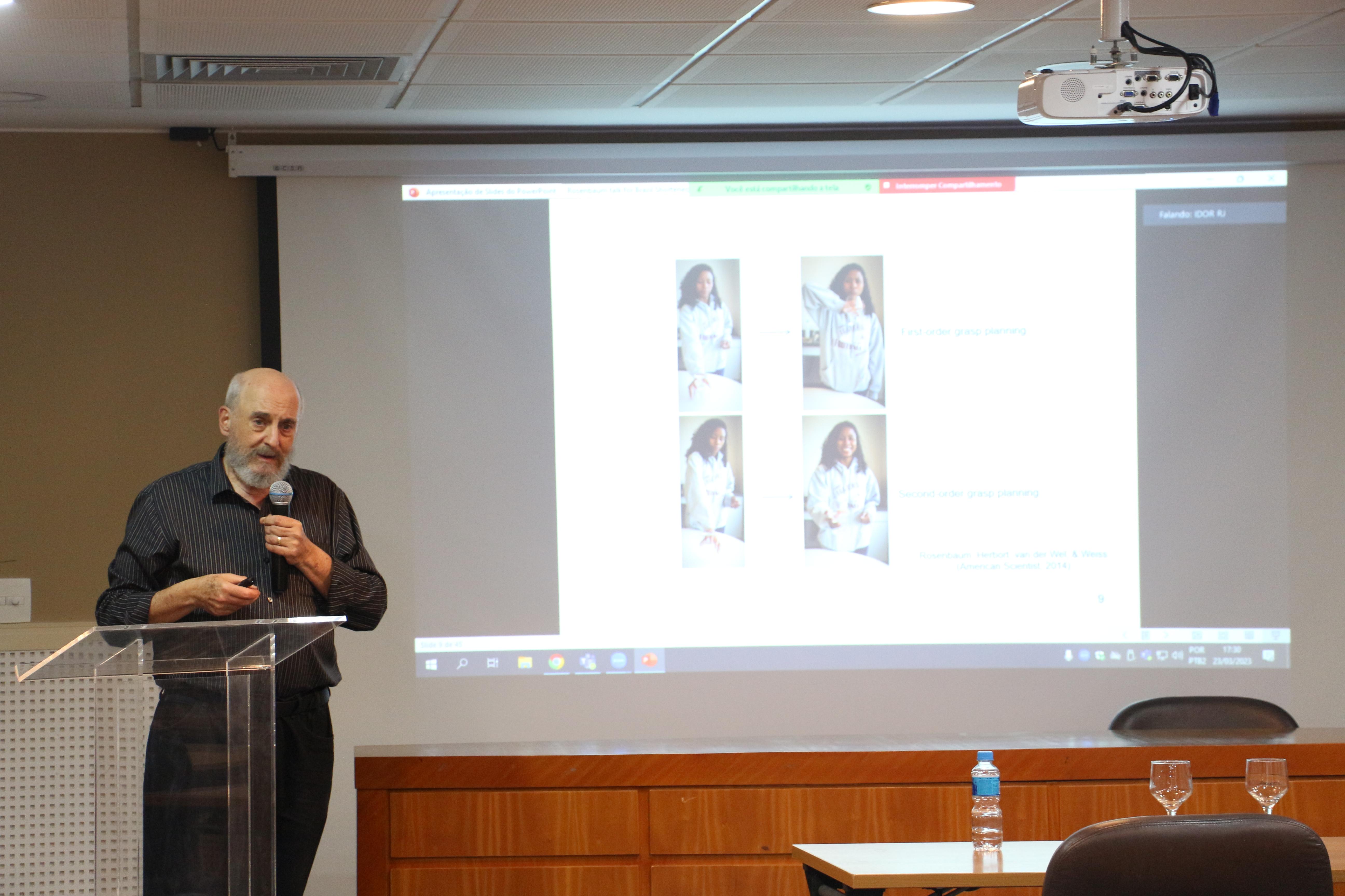 Nesta quinta-feira, 23/03, o Instituto D’Or de Pesquisa e Ensino (IDOR) recebeu um convidado internacional, o Dr. David A. Rosenbaum, para a realização de uma palestra na sede do Rio de Janeiro, em Botafogo. A reunião ocorreu de forma presencial no auditório e on-line para participantes remotos. A introdução coube ao Dr. Roberto Lent, neurocientista do IDOR e coordenador da Rede Nacional de Ciências para Educação (Rede CpE).