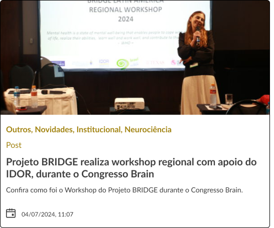 Objetivo do Projeto: O BRIDGE busca desenvolver uma estrutura uniforme e sustentável para a governança, compartilhamento e uso de dados de neuroimagem e saúde mental em todo o mundo. O produto final será um consórcio global dedicado a operar, atualizar e disseminar dados robustos sobre o cérebro.